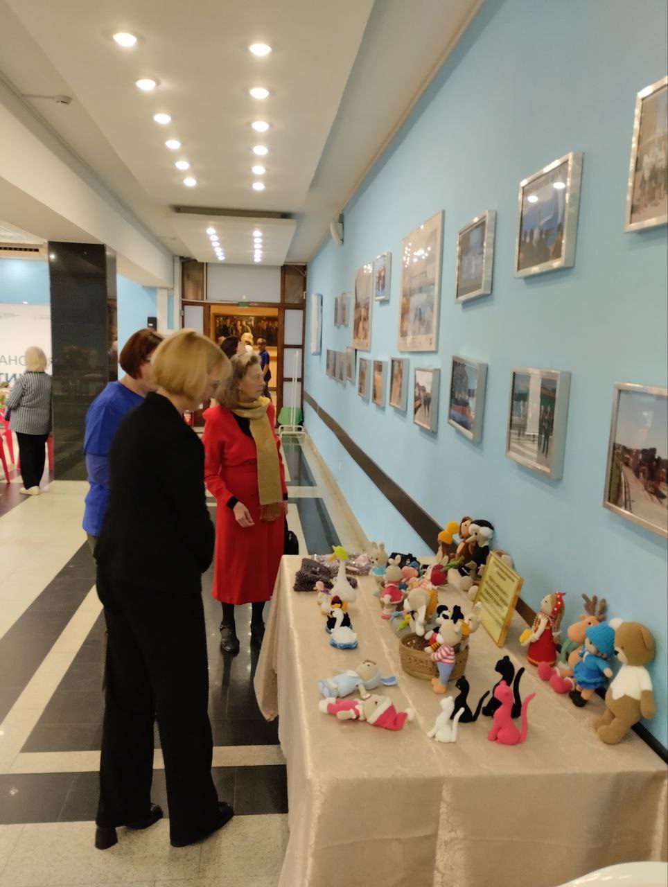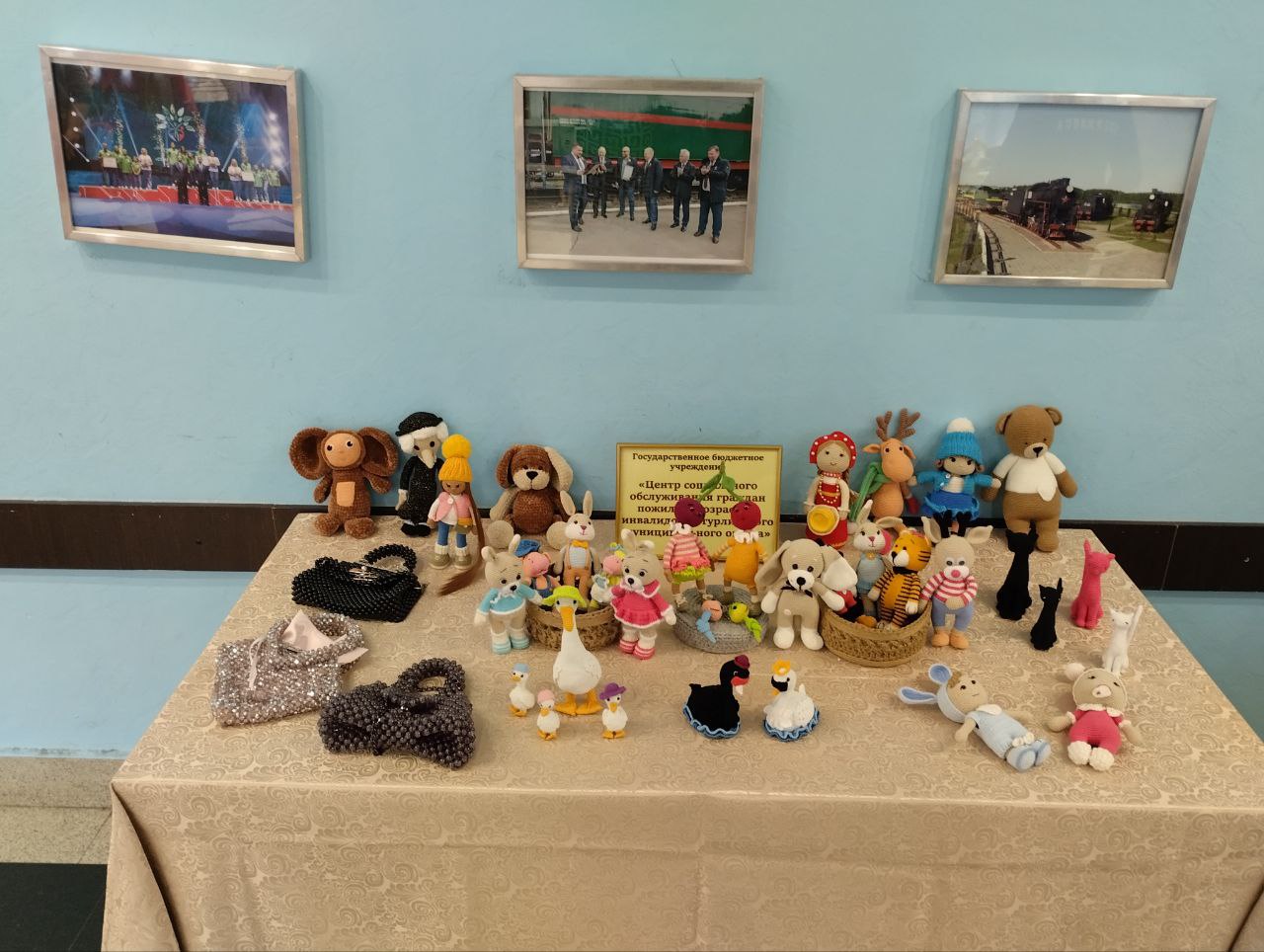 В выставочном зале работники нашего учреждения представили очень разнообразную творческую выставку вязаных изделий, выполненных в различных техниках получателями социальных услуг. Изделия прикладного творчества притягивали взгляды и вызвали большой интерес среди посетителей мероприятия.